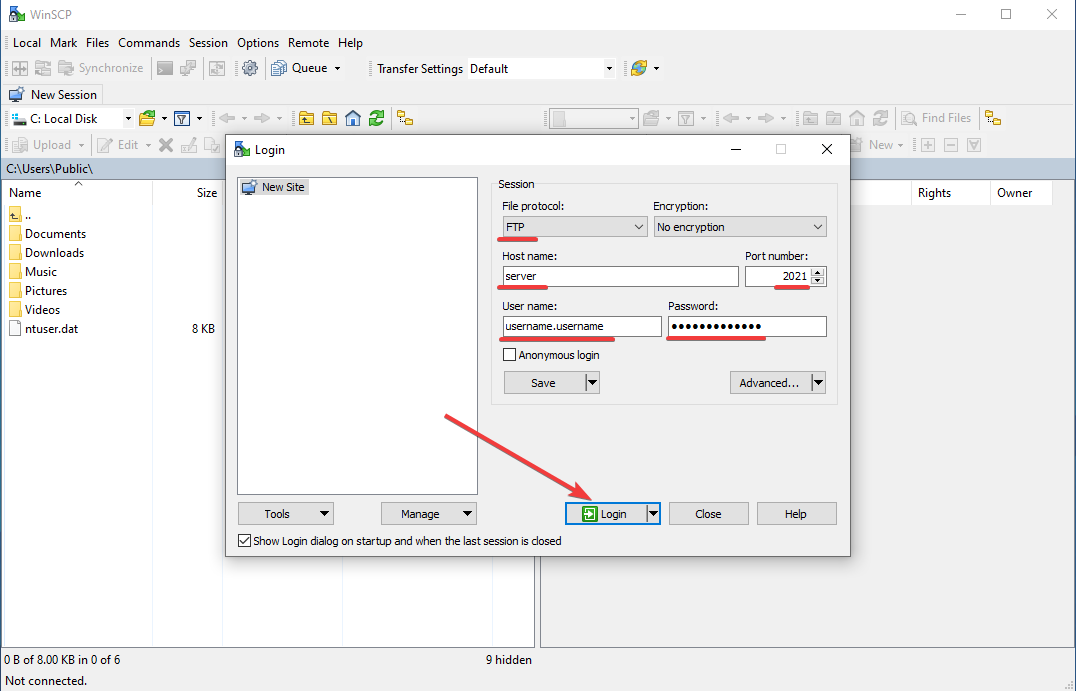 Cum se stabilește conexiunea prin intermediul WinSCP