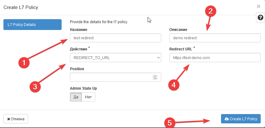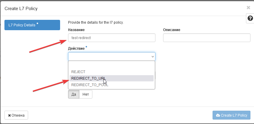 2 - În fereastra deschisă, mergeți la fila L7 Policies -> Create L7 Policy.
