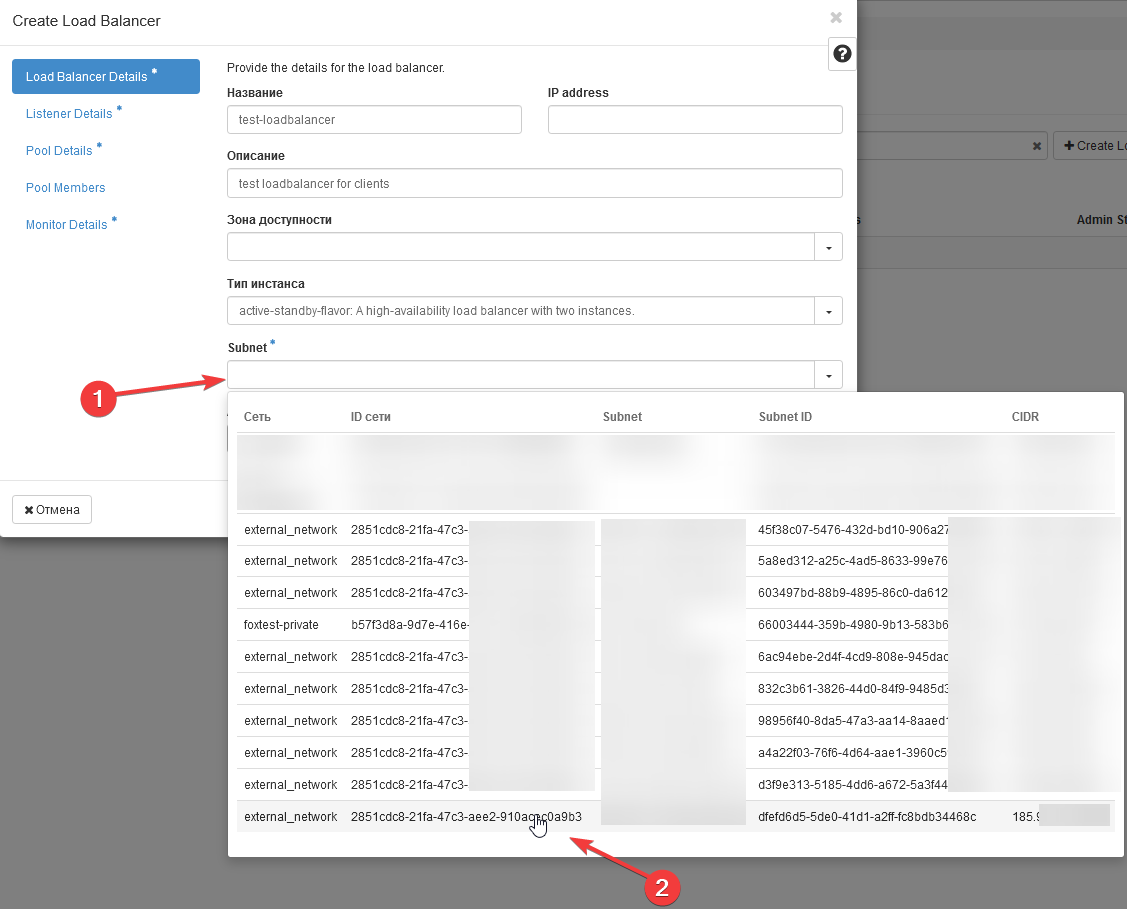 4 - Selectați Subrețeaua: Alegeți subrețeaua în care va fi creat load balancer-ul. Este important să existe adrese IP libere în această rețea.