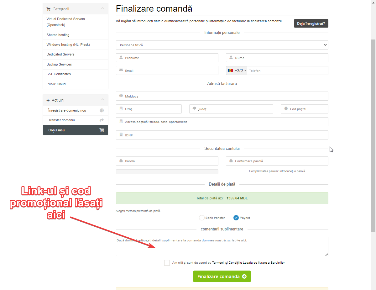 3) Înregistrați-vă pe site-ul nostru și plasați o comandă pentru serviciu selectat. În comentariul la comandă, plasați un link către pagina dvs. de pe Facebook sau VK și scrieți-ne ce cod promotional/oferta care doriți să reînvieți.