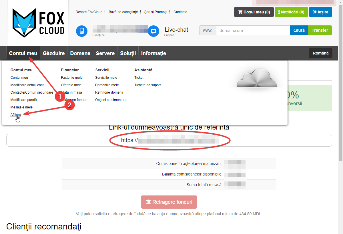 Link-ul de afiliere nu poate fi transmis unei persoane care deja este client Foxcloud.